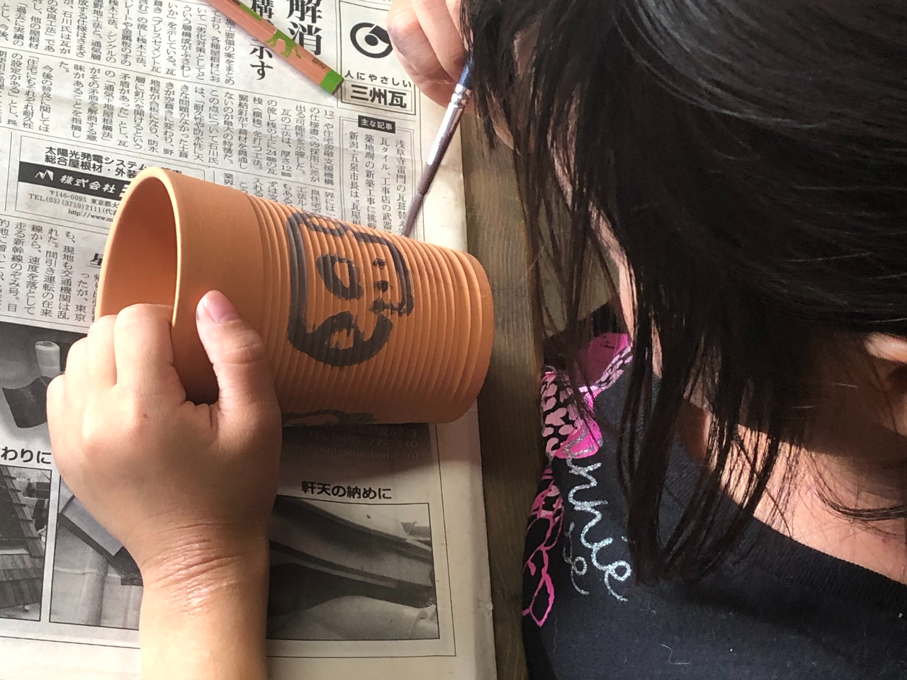 - 30cm角の本物の瓦へ釉薬を用いて絵付けを行う体験です。 好きな文字や絵を書いたり、お子様の成長の記念に足形・手形を押される方もいます。 思い出の作品を作りましょう♪