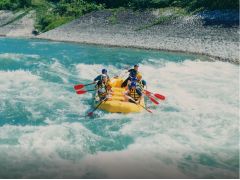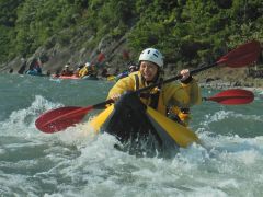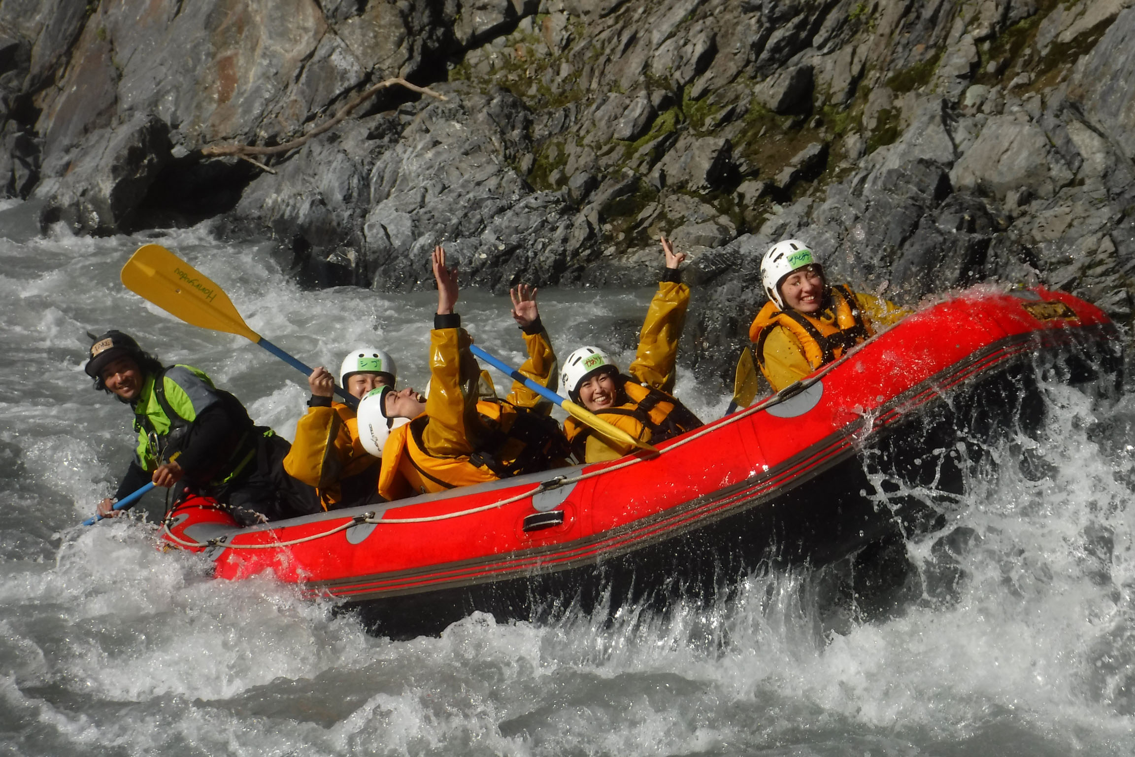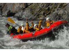 ラフティングは大型のゴムボートに乗り、乗客みんなで力を合わせて激流を下っていくスポーツです。8人乗りのラフティングボートツアーを開催し、リバーガイド1名と7名が乗船します。...