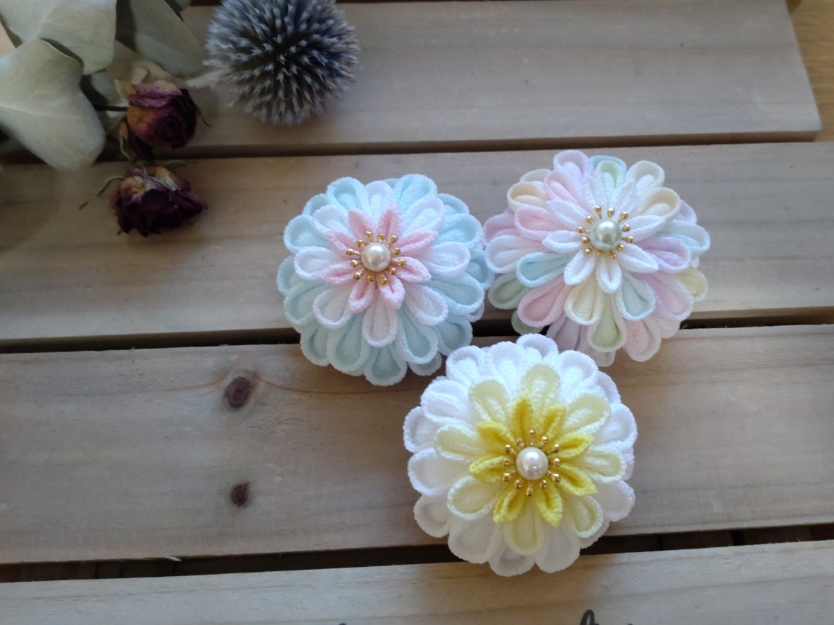 - つまみ細工の基本的なつまみ方で髪飾りを作りませんか。 世界にたったひとつのオリジナル作品で七五三をお祝いしましょう。 子供さんのために、お孫さんのためにチャレンジ。初めての方大歓迎!!