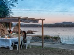 - (2)船からの来店も大歓迎! ビジター桟橋利用料金:レストランご利用で1000円(2時間) ※事前にご連絡ください。