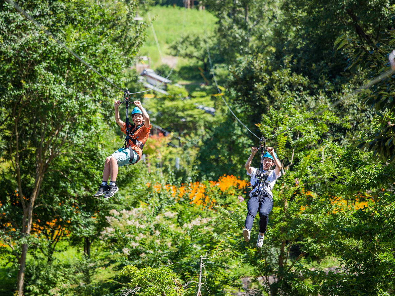 - 豊かな木々の上空を一気に滑る降りる大規模のジップライン。 さあ、ここでしか体験できないアクティビティを楽しもう!!