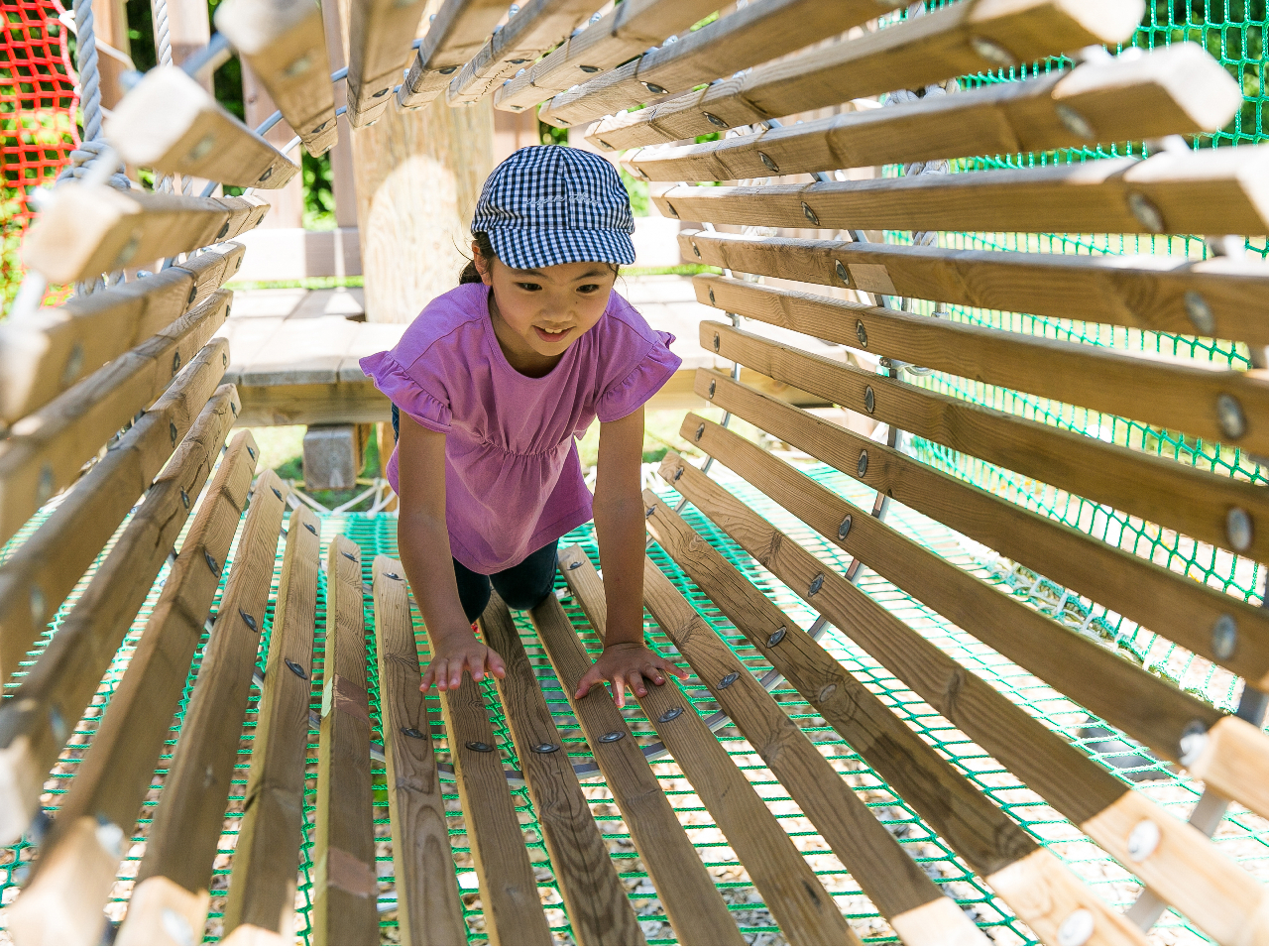 - 本格的なアスレチックに挑戦!高さ4mの空中冒険が君を待っている!! 大人から子どもまで、ファミリーでも楽しめる中級コース。 高さ4mからの開放的な眺めはきっと家族みんなの心に残るはず★