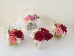- アーティフィシャルフラワー 枯れない高品質の造花で、華やかなミニブーケや アレンジ、リース等を作ります。 そのままプレゼントやご自宅飾りになります。 お水はご不要で、永くお飾りいただけます。