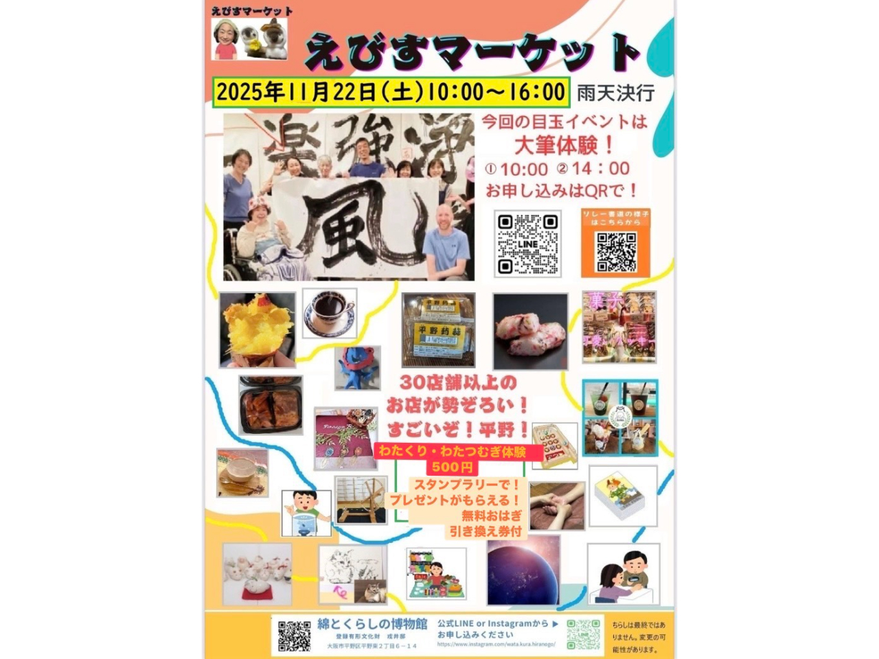 - ・国の有形文化財で綿繰り・綿つむぎ体験♪ ・30店舗以上出店するえびすマーケットも楽しめます! ・初心者・お子様もOK!所要時間15分!手ぶらで参加可能!