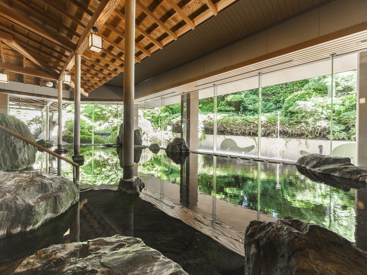 日本庭園を望む非日常の空間で癒しのひと時《千坪の庭園に溢れる自家源泉かけ流し温泉≫ 肌あたりの柔らかな世界屈指のラドン泉が12趣の湯処から潤沢に溢れます。 毎日15:00〜22:00...