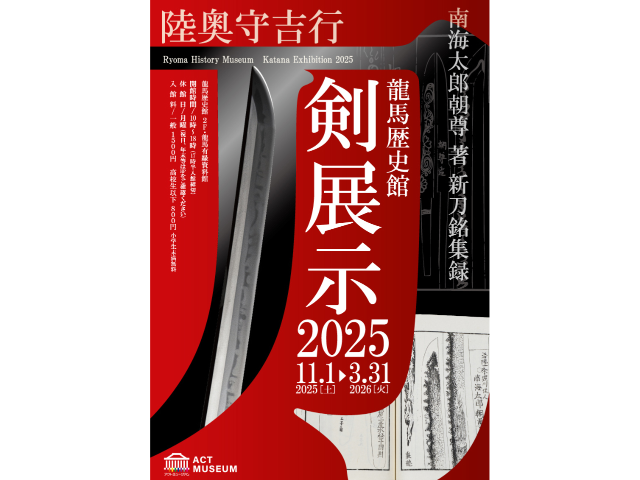 - 2025年11月1日から2026年3月31日まで、龍馬歴史館2階・有縁資料館にて刀剣展示をしております。 連携展示「令和土佐藩」の関連施設です。
