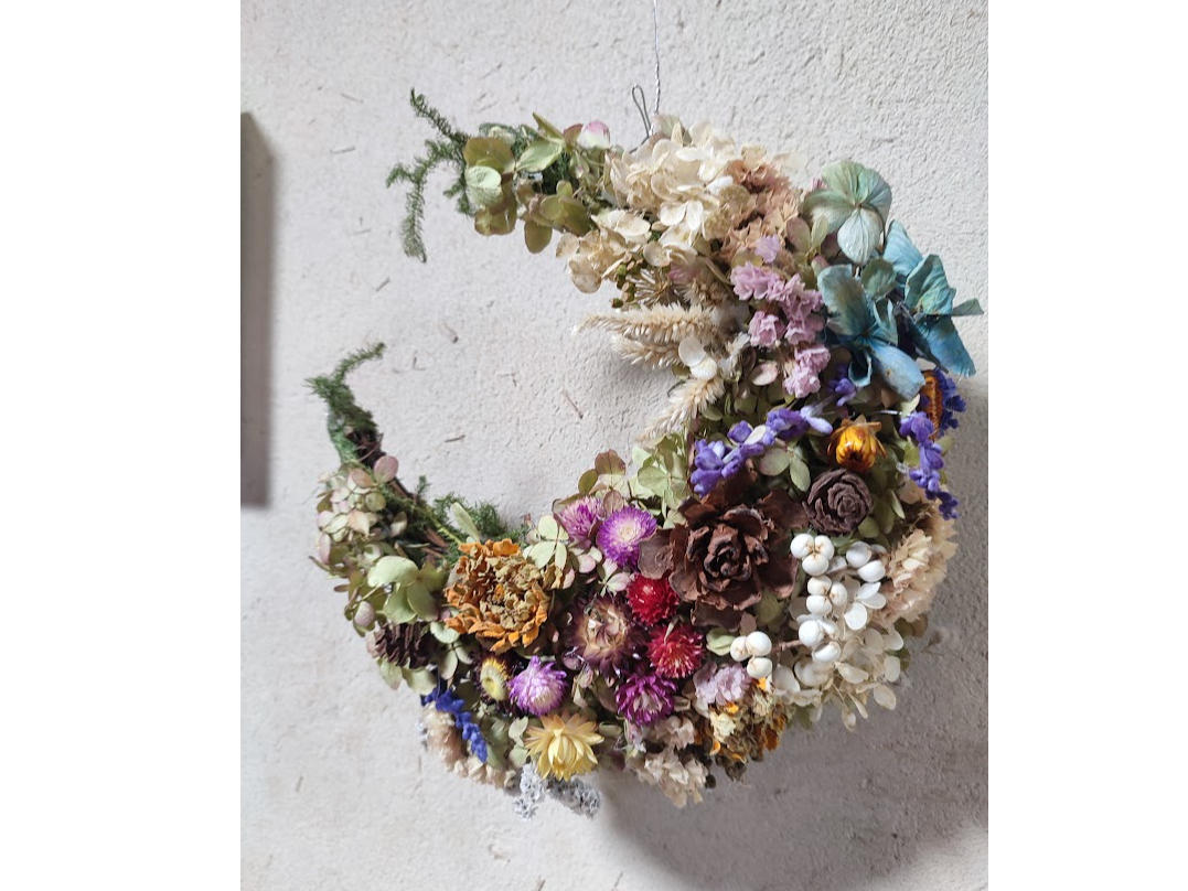 ドライフラワーで三日月型のリースをつくろう♪