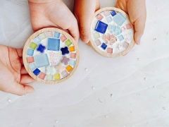 - 小さなガラスタイルを組み合わせてコースターを作ろう! 組み合わせかたによっていろいろ作れちゃう。 無限大に楽しめるガラスタイル。キラキラ可愛く作っちゃおう。