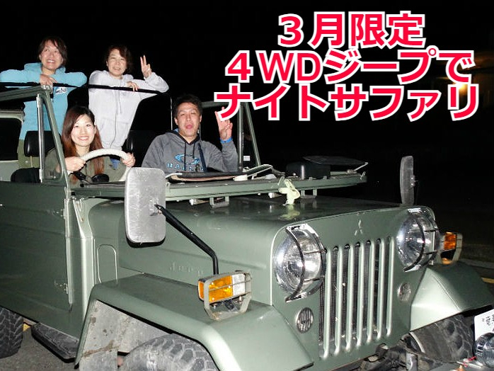 【じゃらん限定】ナイトツアー専門ガイドと行く!〔3月限定〕 たっぷり2時間30分の大冒険、当店だけ!4WDジープで未舗装道路をジャングルクルーズ
