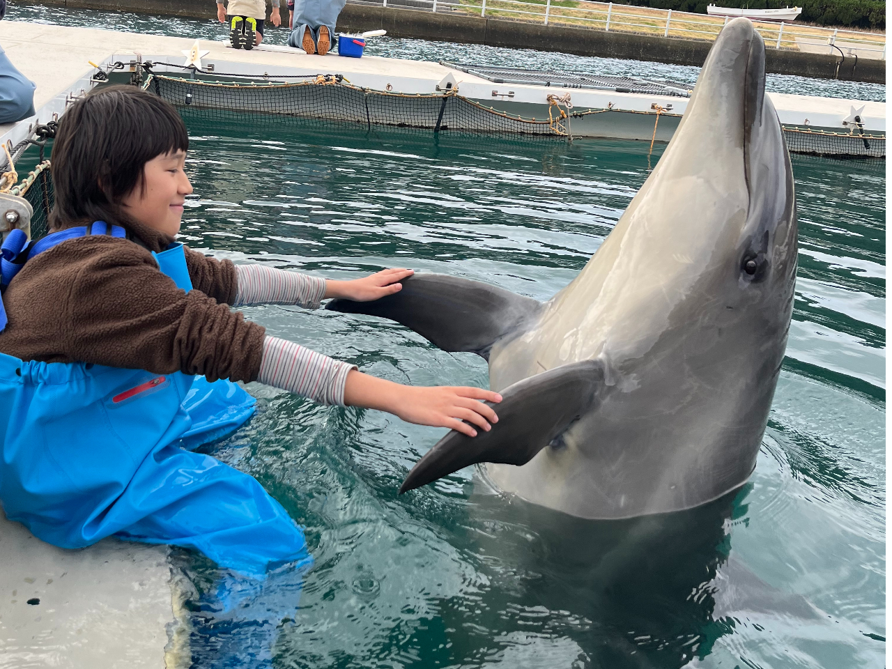 - イルカと握手をしよう! (胴長を着て膝まで海に入ります) 間近でイルカの大きさも体感できるよ!