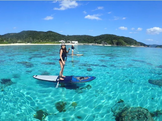 - 美しいサンゴ礁の海をインストラクターと一緒に漕いでみませんか? みなさんのレベルに合わせ、景色や上手な漕ぎ方を説明しながらご案内します。 疲れた時は座って漕いでも全然オッケーですよ!