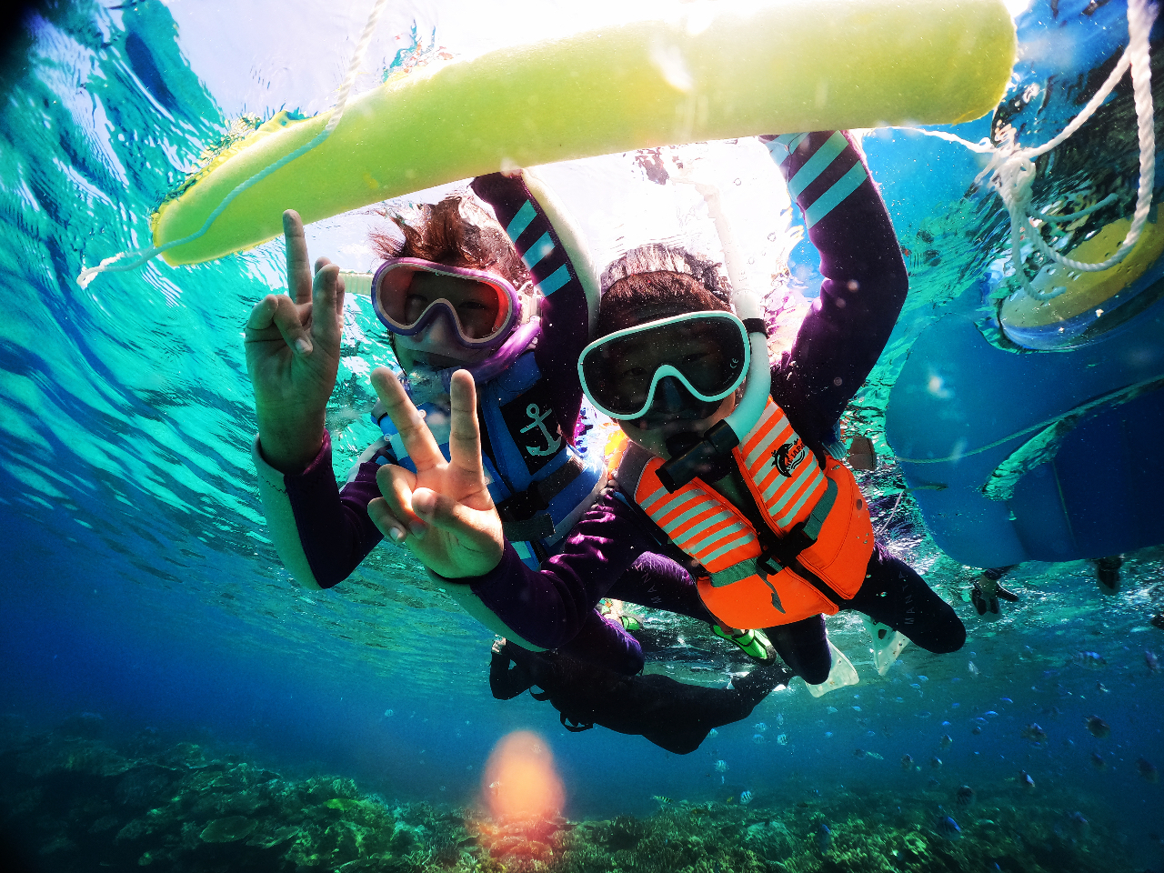 - サンゴやカラフルな熱帯魚が生息する海を、島在住のガイドがご案内いたします! ガイドが必ずレスキューチューブを持ってご案内いたしますので、泳ぎに自信のない方や小さいお子様でも安心してご参加いただけます。