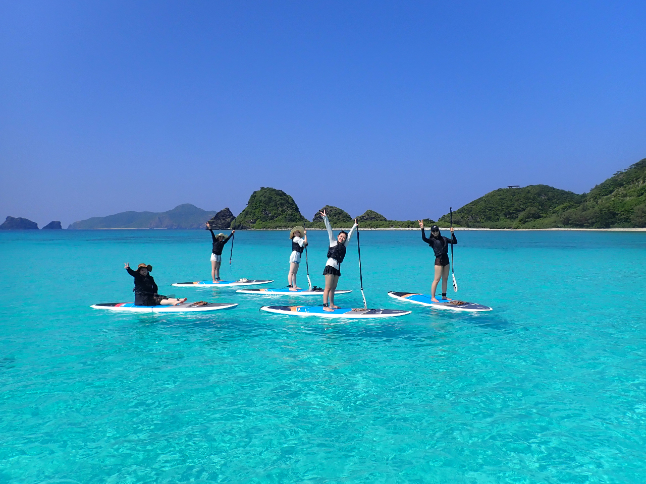 【座間味】【2,5〜3時間】手ぶらで大満足!SUP&シュノーケルツアー☆お写真無料☆お子様・初心者大歓迎!慶良間ブルーでSUPデビュー♪ ※10時開始のツアーは9:50着の船をお迎えしてからになります