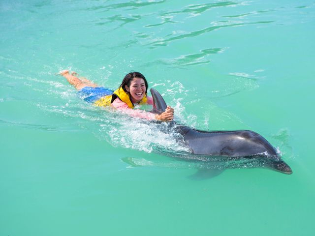 - ★0歳から参加OK! ★イルカとのふれあい度MAX! ★身長110cm以上ある方はイルカの背びれにつかまって泳げる♪ ※本プランは5歳以下の方は大人(18歳以上)の同伴参加(有料)が必要となります。