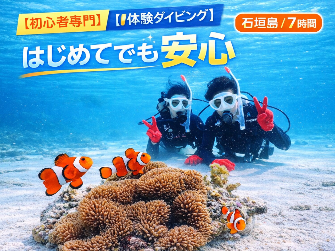 【宜野湾発/慶良間開催/一日】体験ダイビング2DIVEツアー【宜野湾市内送迎無料☆水中写真プレゼント☆スタッフ貸切☆器材無料☆タオル無料☆酔い止め無料☆昼食付】
