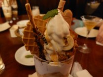 8のサインが有名なデザイナーズカフェ。ゆったりくつろぎながらパティシエが作る至極のパフェを堪能。ソフトクリームは道内の乳製品を使用していて、超濃厚です!!