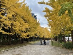 ホテルから散歩に出かけると、落ち葉が舞いながら散歩道は一面金色に敷き詰められていました。その上を通勤の方でしょうか、自転車で通り過ぎられたり、海外のグループの方々、親子連れ、等、思い思いに満喫。勿論、私もこんなスケールで紅葉を楽しんだのは、初体験でした。