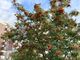 旭川駅に面した宮下通りを大雪地ビール館方向に歩くと、歩道に植えられているのがナナカマドです。雪を被ったナナカマドの赤い実はとても美しいですよ。