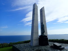 稚内公園内、宗谷海峡を望む北側に氷雪の門があります。この門に隣接して「九人の乙女の碑」が。終戦時、樺太での有名な悲劇を忘れまいと建てられた碑です。無料の駐車場があり、側にお土産屋さんもあります。お土産屋さんを挟んで反対側には南極探検で活躍した犬たちを記念した像も建っています。