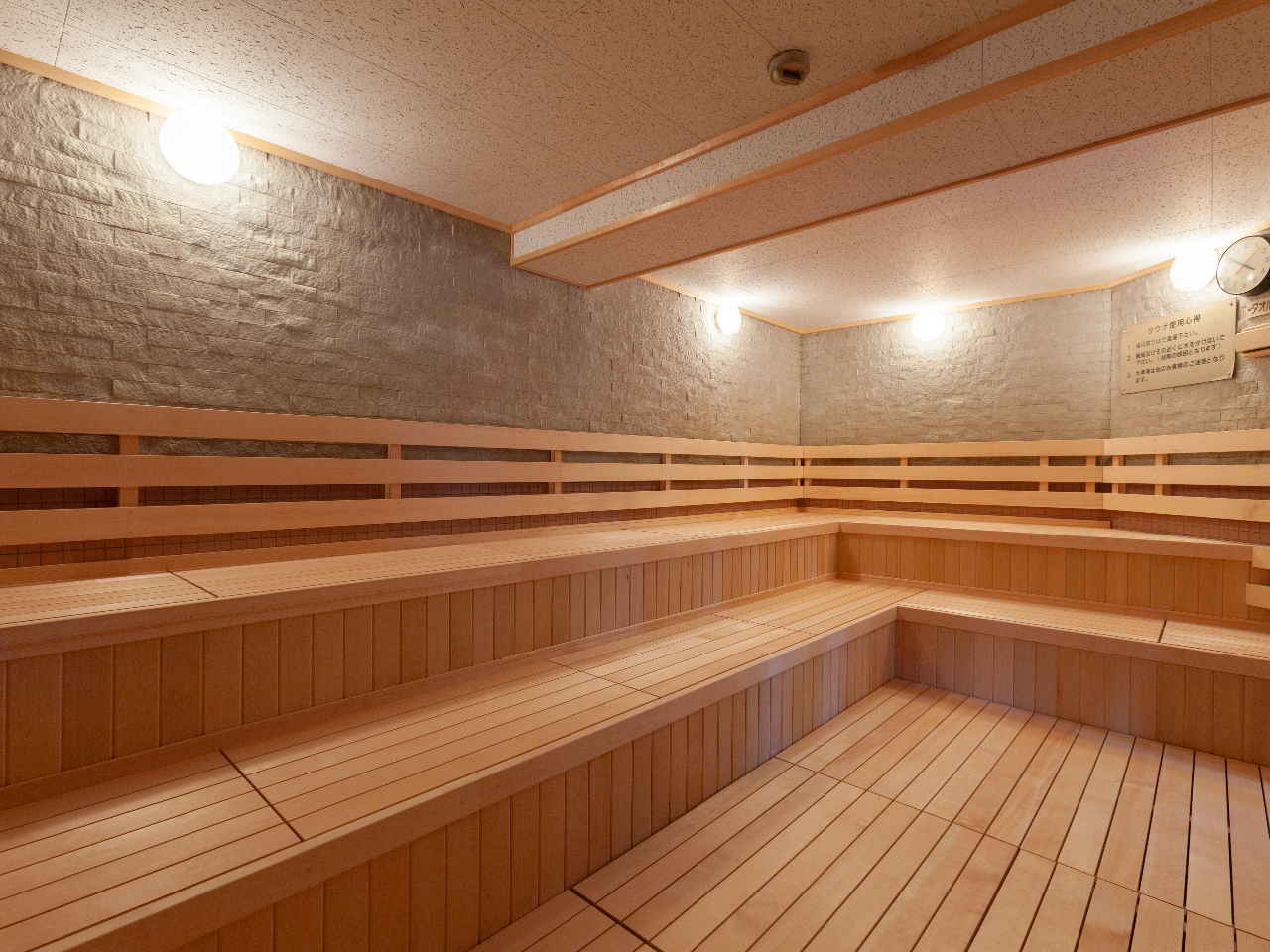 気泡湯、子供風呂、露天風呂や乾式・湿式サウナなど様々なタイプの温泉設備を完備している。