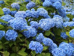 山の駅は地元産リンゴの加工をする工場がメインで加工品の展示販売も行っています。また、建物前にある丘の斜面全体に紫陽花の花が植えられていて、夏にはきれいな青い紫陽花の花が私たちの目を楽しませてくれます。訪れた7月28日はほぼ満開でとてもきれいでした。ただ、色が青のみのようなので少しだけ残念です。