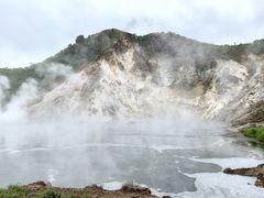 白煙を上げる日和山と、グレーがかった乳白色の湯沼を一緒に見る事が出来ます。