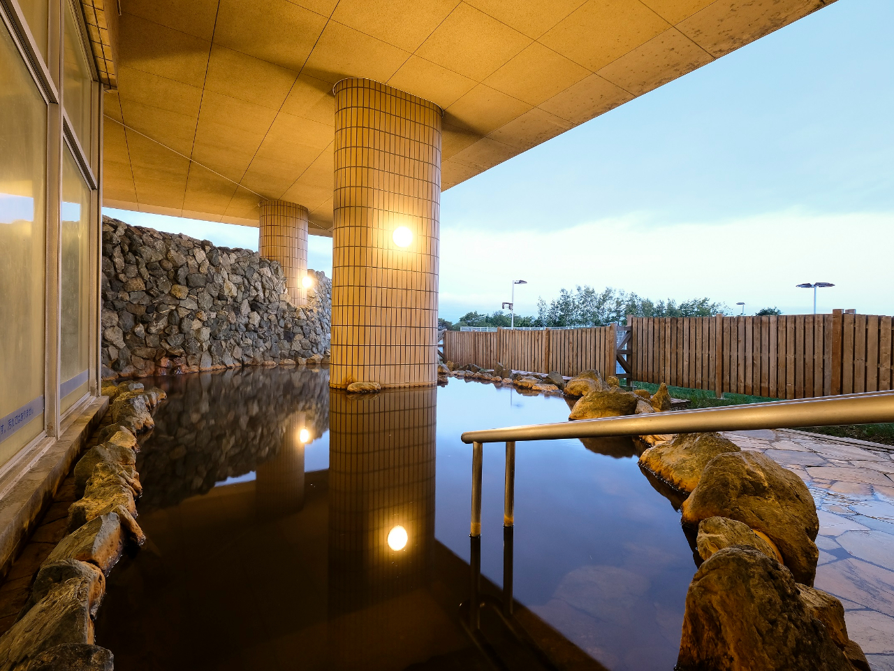 「たっぷの湯」の露天風呂。わかさぎ釣りをされたお客様は、無料で入浴できます。