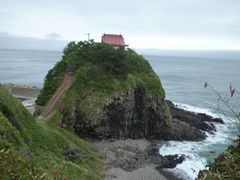 奥尻島をドライブ中、車窓に赤い鮮やかな建物が目に入りました。