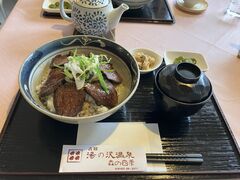 鹿肉丼と温泉のセットを夫婦で利用。