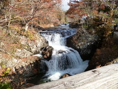 紅葉と滝の流れのコントラストが鮮やかでした。
