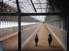 屋内ダートコースでの練習の様子を見学しました。