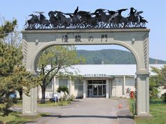 博物館前にたつ優駿の門上部にある32頭の駿馬がむかえてくれます。