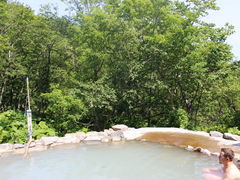 男湯の方は緑豊かな山林に囲まれ、下からは川のせせらぎが聞こえます。