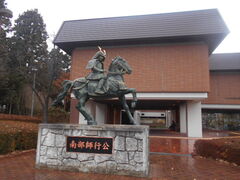 根城の広場の先には八戸市博物館が在り、根城跡との共通券で入館できます。博物館前には根城を築城した、初代城主である南部師行公の騎乗銅像が凛々しく建っています。