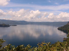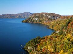 瞰湖台(かんこだい)から見た十和田湖 二重カルデラになっています。