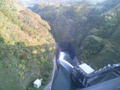 入畑ダムです。ここから下に入畑温泉が見えますよ。紅葉時期オススメです