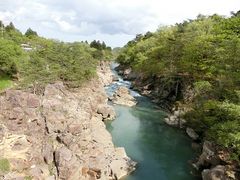 一ノ関駅からバスで約30分、川を渓谷で囲まれた厳美渓に建つ温泉ホテルです。厳美渓は眺めがとてもよく、たくさんの観光客が来ていました。