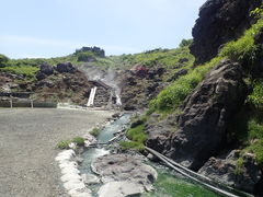 温泉が湧いているところの隣を歩いていきます。