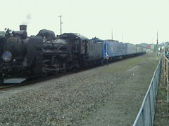 微速でバックするC58-239号。客車に連結する少し前の状況。