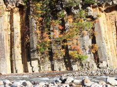全国でも珍しい六角柱の柱状節理が見られる岩層の絶壁。紅葉シーズンは、青みを帯びた松川渓流と玄武岩の紅葉のコントラストが美しく、人気のスポットとなっている。