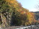 朝一番に松川渓谷へ行ってみました。紅葉は、残念ながらもう少し後のよう。でも崖の岩肌もイイ感じですし、川はクリアーなブルーの流れで、朝一番の目覚めには良い景色でした。