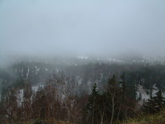 アスピーテラインを挟んで茶臼岳の反対側にちょっとした駐車場があります。ガスがかかって視界は悪いのですが5月中旬に雪山を眺める事ができました。私にとっては非日常の別世界です。