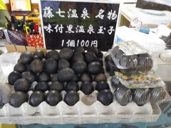 藤七温泉名物味付黒温泉卵。他でも売ってるのを見たことはあるけど、今回は中身が気になって買ってみた。中は真っ白たった。黄身は硬めの半熟で、ねっとりしっとり。ほどよい塩味がついていて美味しかった!どうやって塩味、つけるの?どうして真っ黒になるの?どうしてほどよく硬めの半熟になるの?後で調べてみよう。