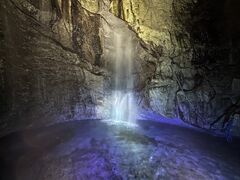 午後だったので余り人が居ないと思いましたが、いやいやつぎから次と車が入って来ました。受付をして説明がありヘルメットがわたされました。一心大丈夫かと思いましたが、1時間くらいで見てこれると言うので入りました。1歩目から腰をかがめて進みました。確かにヘルメット着用の意味が解り、すれ違う人と声かけ合い辿り着いた所にはかなりの高さから落ちる大きな滝が岩を滑り落ちる姿は勇壮でした。この時は水が少なめのようでしたが、素晴らしい姿でした。出てきた時はかがんで歩いたため腰痛になりました。しかし自分の目で見れて満足しましたよ。