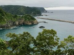 岩泉龍泉洞ICから国道45号を南下し、小本トンネルを抜けてすぐの脇道を鋭角に曲がった後、細い山道を通ってたどり着く場所です。夕刻ということもあり、展望台には誰一人いませんでした。断崖に開いた二つの穴を熊の鼻と例えており、ユニークなネーミングに感心します。ただ、展望台の登り口に「熊出没注意」と掲示されていたのは洒落にならないと思い、早々に退散しました。