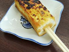 国道が工事されていて、それにより臨時的に移動して営業しているっぽいですね。ニンニク味噌の匂いに誘われて豆腐田楽をいただきました。なかなかあと味の残るヘルシーな一品ですが、私は大好きです!100円ですしね。