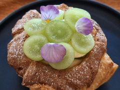 湯の原ホテル内のカフェ山ノ季(やまのとき)さんで、季節のフルーツを使ったオープンシューを頂きました。今の時期はいちじくとシャインマスカットの2種類があり、ちょっとだけお値段が違います。パイシューの中にカスタードクリームとカットされたシャインマスカットがゴロゴロ入っています。シャインマスカットは歯にしみるほどの甘さ!でも洋酒がほんのり香るカスタードクリームも、とっても美味しくてシャインマスカットに全然負けていません。パイシューがボロボロ崩れて、ちょっと食べづらい感じはありますが、大変美味しく頂きました。(*´∇`)近くに来たら、またお邪魔したいと思います。ちなみに火、水曜日定休でパスタやカレーのランチもありましたよ。