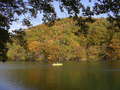 長老湖の湖畔には遊歩道が整備されていて、一周2キロの紅葉を楽しめます。遊歩道にはブナや楓やナラの木が見事に紅葉してます。