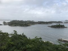 8分で毘沙門堂に着くと書いてあるので遊歩道を行きます。遊歩道沿いにはアジサイがありました。4分ほど歩くと多聞山の山頂に着きます。あまり眺望はありません。そこから先は急な石段を下ります。4分ほどすると毘沙門堂に着きます。そこからの眺望はすばらしく、馬放島(まはなしじま)などの松島の島々や遊覧船が見えました。