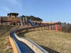 天気の悪い日に訪問したので、たくさんのものがモヤの中…レストランとお土産物売り場がある施設は、閑散としていて寂しい感じでした。グラスで頂いた牛乳はとてもおいしく量もたっぷりでした。お土産物は、小さなお子様向けのおもちゃが中心で、種類は少なかったです。ウサギや羊、ヤギ、ポニーなど、触れ合える動物がいっぱいいて、大きな滑り台もあるなど、小さなお子様連れの家族には、魅力的な場所だと思います。